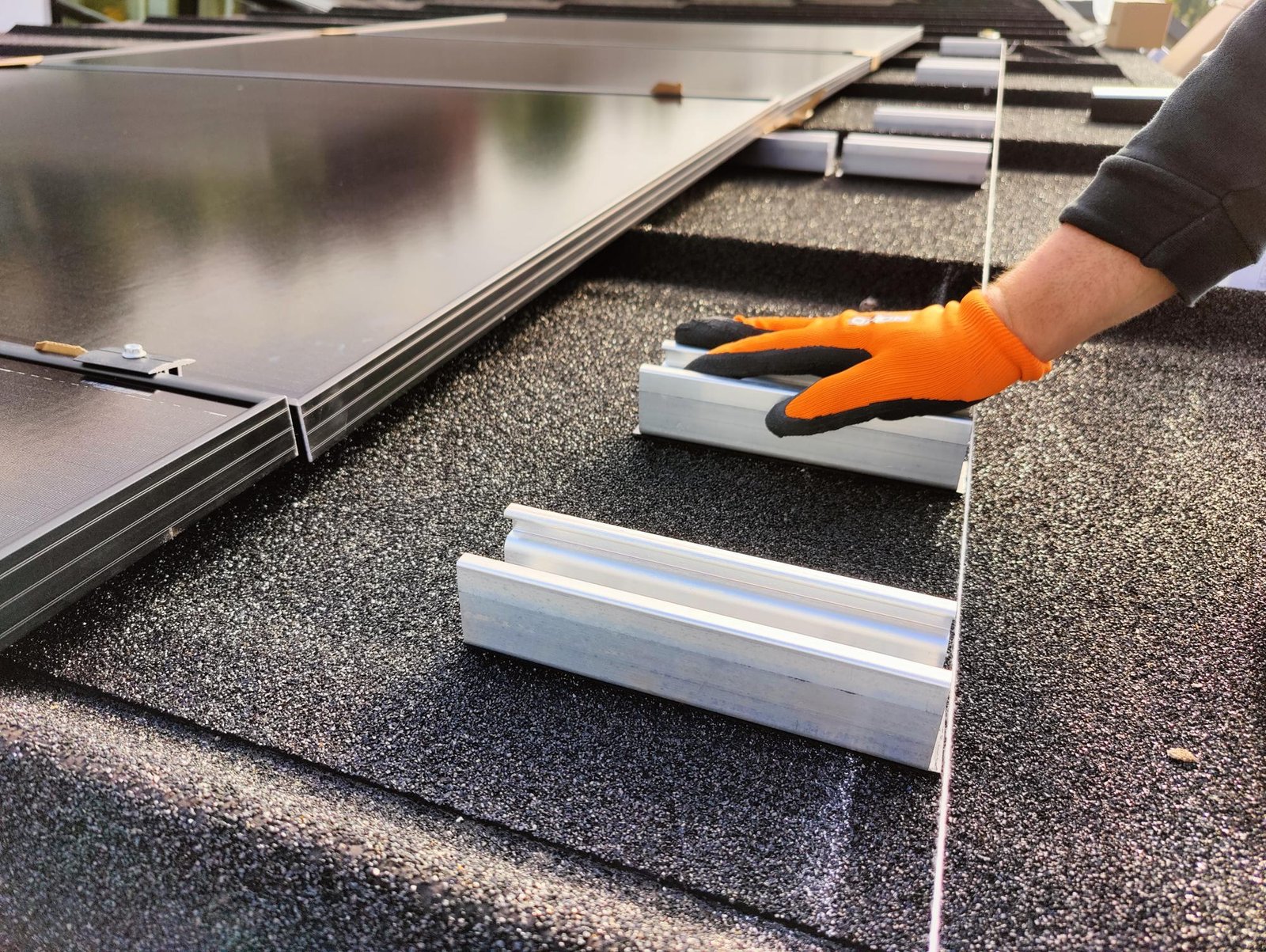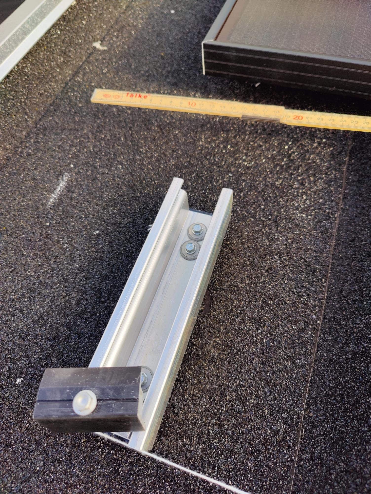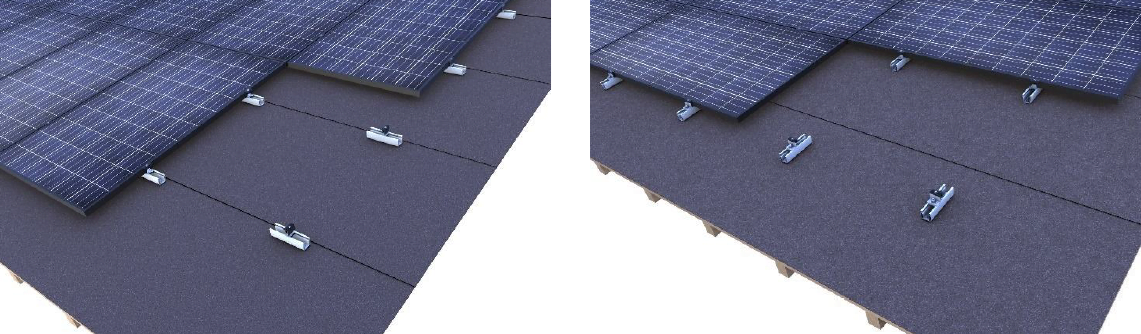 Spånløs montering udføres ved hjælp af Novotegra Skrue 6.5×50 monteringsskrue 4 stk. per C47 skinne. Denne skinne måler 200 mm (52 x 47 mm) til tagpap med lister.